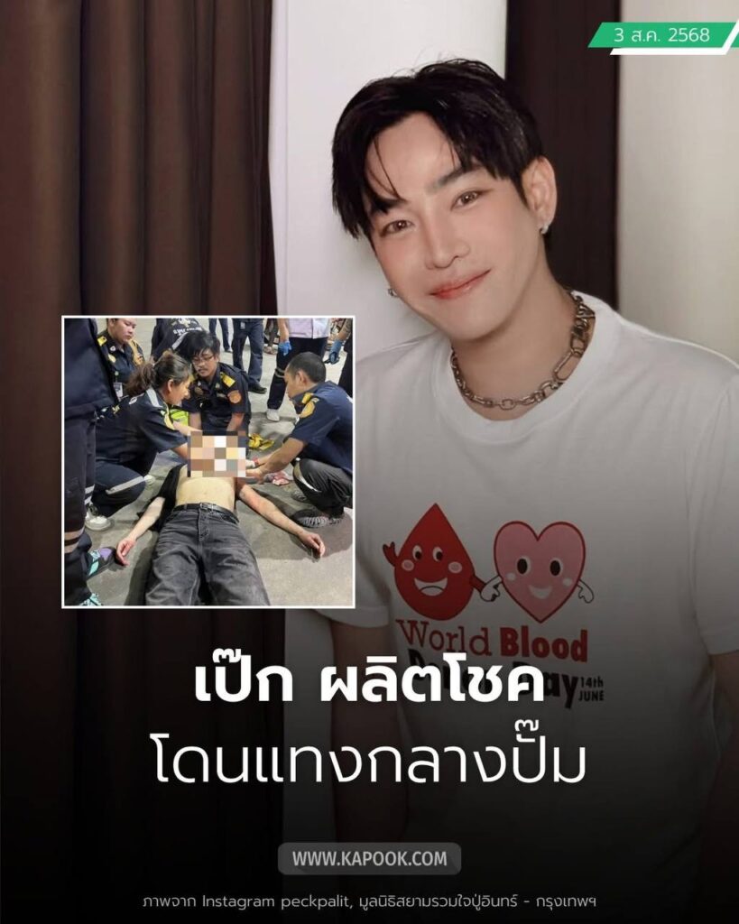 ภายหลังมีรายงานว่า ผู้ได้รับบาดเจ็บคือ #เปกผลิตโชค นักร้องชื่อดัง